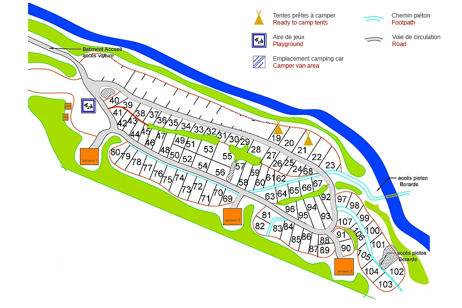 Le camping dispose d'emplacements vastes et plats pour placer votre tente, caravane ou camping-car.